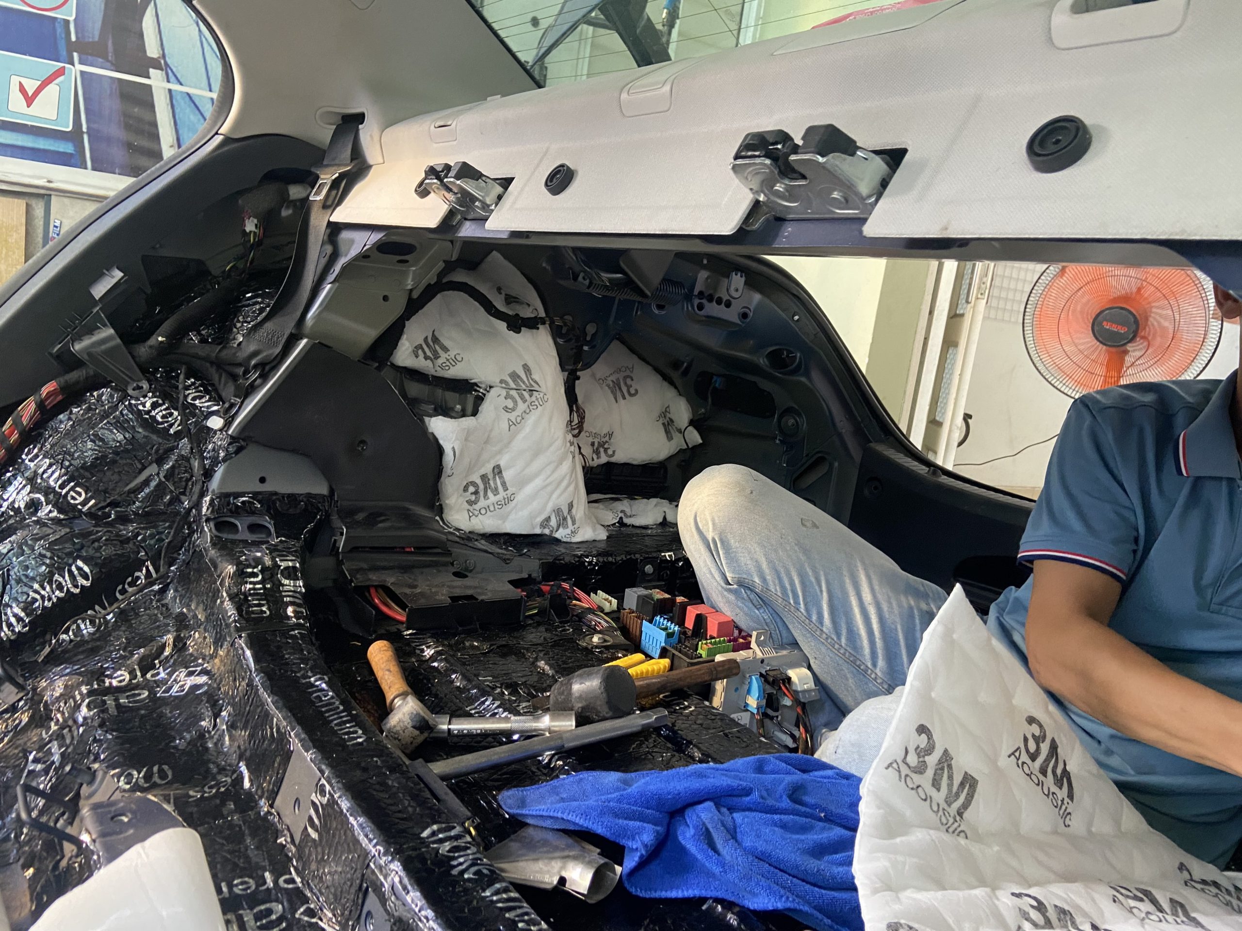 Để hoàn thành cách âm chống ồn ô tô đúng về cách âm chống ồn cho xế yêu của bạn, chúng ta cần phải tiến hành 2 tháo tác về dán vật liệu cách âm theo tiêu chuẩn mà bạn chọng lựa, đồng thời dán phần lớp bông tiêu âm song song đồng thời với nhau sẽ giúp hiệu quả nhất trong việc cách âm, triệt tiêt hiệu quả về âm thanh và cũng như tiếng ồn thân vỏ động cơ gây ra.